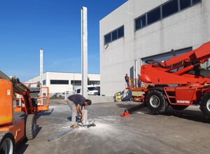 Dopo un'attenta fase di rilievo preliminare, il progetto dell'area esterna ha previsto la realizzazione di circa 1.500 mq di pavimentazione industriale ed ulteriori opere in c.a. connesse al carico e scarico merci, cuore pulsante dell'attività svolta dalla Committenza.
