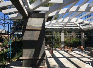 La struttura è in cemento armato, caratterizzata da una platea di fondazione e pilastri e travi in elevazione.
