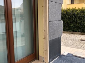 - riqualificazione dell'involucro esistente mediante la posa in opera di pannelli in EPS grafitato di spessore 12 cm e successivi strati di finitura ad alta traspirabilità e repellenza all'acqua;