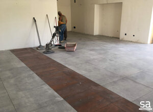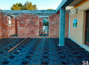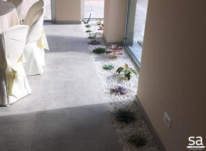 La pavimentazione interna tipo gres è stata posta in opera su un solaio aerato caratterizzato da cupole in polipropilene (iglù) sulle quali è stato eseguito un piccolo getto di completamento.