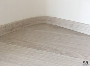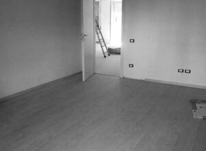 Carattere saliente della presente ristrutturazione è stata la posa di circa 180 mq di laminato in plance di grandi dimensioni (spessore 12 mm) riproducendo con grande realismo i nodi e le venature del rovere. Il colore è un marrone chiaro e luminoso, arricchito da sfumature più intense e illuminato da zone più chiare.