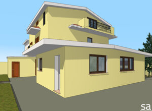 Il progetto prevede la realizzazione di una villa bifamiliare costituita da piano interrato, piano terra, piano primo e secondo sottotetto.