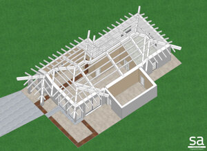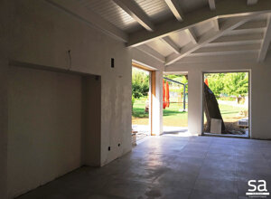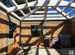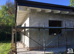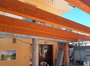 Il progetto ha riguardato la sopraelevazione di un edificio esistente in muratura portante e realizzazione di un tetto in legno di tipo ventilato, costituito da travi in legno lamellare GL 24 H ed isolamento termico in lana di roccia.