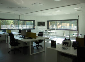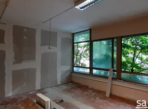- distribuzione e fruibilità degli spazi interni mediante setti in cartongesso e vetrate a tutta altezza;