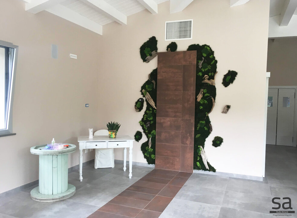 La progettazione dell'opera è stata anzitutto rivolta alla creazione del giusto connubio con l'area verde esterna, ricca di uliveti che richiamano le meravigliose ambientazioni del centro-sud Italia.