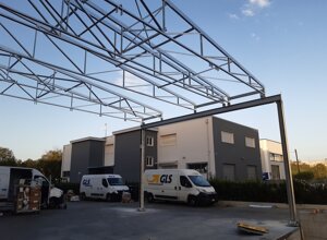 Il progetto ha riguardato la realizzazione di una struttura in acciaio con copertura mobile in PVC presso la sede GLS di San Giovanni Teatino (CH).