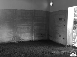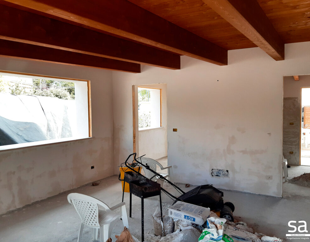 La struttura è stata ricostruita mediante la realizzazione di una platea in c.a. e sovrastanti murature portanti perimetrali tipo Poroton Ecoporizzato, con caratteristiche termo-acustiche ad alta prestazione, in virtù di un futuro cambio di destinazione d'uso della pertinenza.
