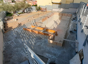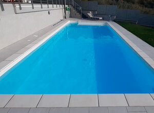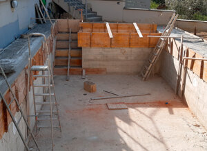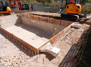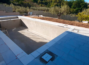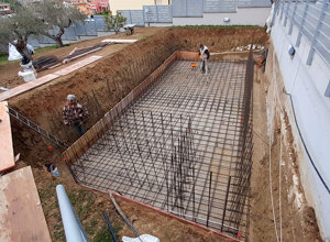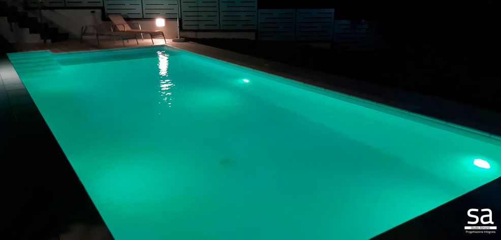 Il progetto ha riguardato la realizzazione di una piscina, profonda 150 cm, avente un ingombro planimetrico di 870 cm x 390 cm, realizzata in cemento armato gettato in opera.